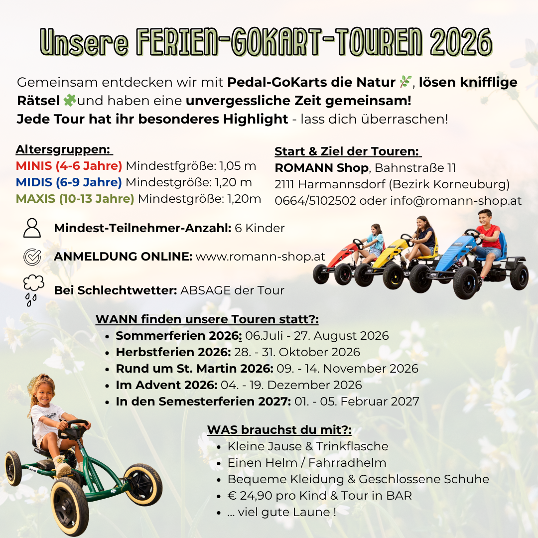 BERG entwickelt seit mehr als 40 Jahren hochwertige und kinderfreundliche Outdoor-Fahrzeuge, die Sicherheit, Qualität und Spaß perfekt vereinen. Alle Gokarts werden streng getestet und nach internationalen Normen gefertigt – für sorgenfreies Spielen im Freien.